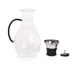 Tálalj bájosan és gyakorlatiasan! BOROSIL kancsó 1,2 L egy modern kiegészítő borosilikát üvegből, ügyes automatikusan nyíló rozsdamentes kupakkal, amely csak töltéskor nyílik – a gyümölcs szeletek vagy jégkockák így bent maradnak. Alkalmas limonádák, gyümölcsös víz, gyógynövényes italok és forró tea számára, és elegáns fülének köszönhetően tökéletesen illeszkedik a kézbe tálalás közben.