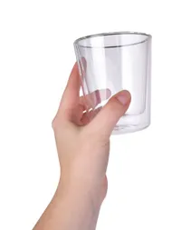 Kétszeres falú termoszkészlet 230 ml boroszilikát üvegből, fül nélkül. Hosszú ideig megőrzi az ital melegét vagy hidegét, nem égeti meg a kezed - ideális espresso lungo, cappuccino, teák és hideg italok számára.