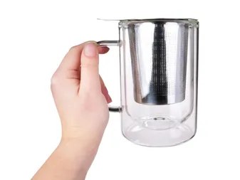 400 ml-es, dupla fali termosz pohár boroszilikát üvegből, kivehető rozsdamentes szűrővel és fedéllel. Tartsd meg az ital hőmérsékletét, nem égeti meg a kezed – elegáns teakészítéshez és kávéhoz.