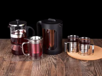 – Anyag: dupla falú boroszilikát üveg + rozsdamentes szűrő + üveg fedél