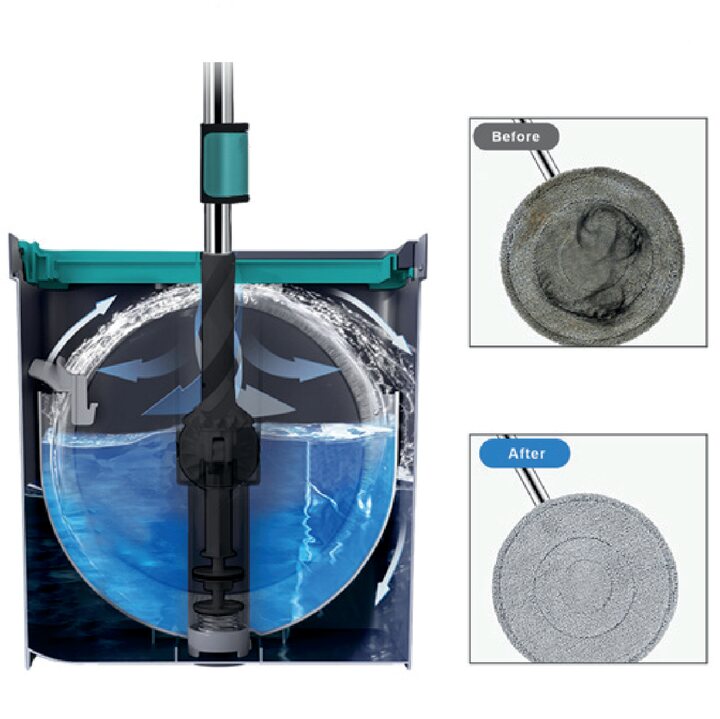 - 2 az 1-ben mosási és centrifugálási rendszer – a mop közvetlenül a vödörben tisztul és csavarodik ki.