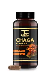 A Chaga (ferde nyárfa, Inonotus obliquus) egy életerős gomba, amely magas poliszacharid- és béta-glükán-tartalommal rendelkezik. Támogatja az immunrendszert, védi a sejteket az oxidatív stressztől és hozzájárul a szervezet vitalitásához. Gazdag vitaminokban, ásványi anyagokban és antioxidánsokban. 90 növényi kapszula, vegánok számára alkalmas.