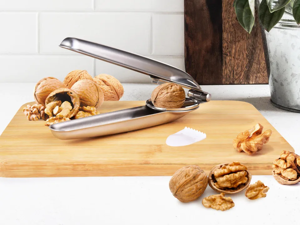 CHEF 2v1 – rozsdamentes diótörő és diótartó ételekhez és gesztenyéhez. Masszív konstrukció, ergonomikus markolat, műanyag gesztenyanyitó. Különböző méretű diókhoz alkalmas.