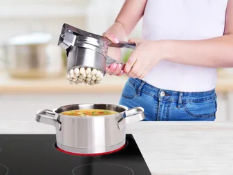 CHEF 3 az 1-ben egy masszív univerzális rozsdamentes nyomó, amely megkönnyíti a burgonyapüré, zöldséges püré és otthoni levesbetétek készítését. Három cserélhető nyomási lemez (finom, közepes, durva) segítségével pontosan azt a textúrát választhatod, amire szükséged van.