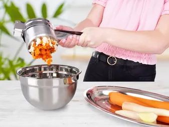 - Finom lemez – ideális főtt burgonya pürésítésére burgonya tésztához, finom pürékhez, kásához vagy babapürékhez, zöldségek és gyümölcslé préselésére.