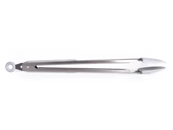 CHEF rozsdamentes acél konyhai csipesz szilikon lapokkal, 38 cm hosszú. Kíméletes az edényekhez, tartós és ideális főzéshez, sütéshez, grillezéshez és tálaláshoz. Extra hosszúság a biztonságos használat érdekében, tároláskor helyet spóroló rögzítőkar.