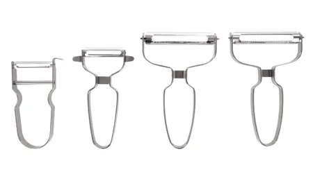 A penge széles formája ideális nemcsak a gyümölcsök és zöldségek héjának gyors eltávolítására, hanem a káposzta, uborka, cukkinik és más zöldségek vékony szeletekre vágására is. A robusztus konstrukciónak és a kényelmes fogásnak köszönhetően teljes irányítást élvezhet minden vágás során.