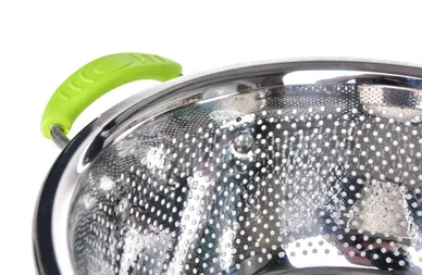 Igen, a szilikon fogantyúk védik a kezeket forró tészta vagy zöldség szűrése közben.