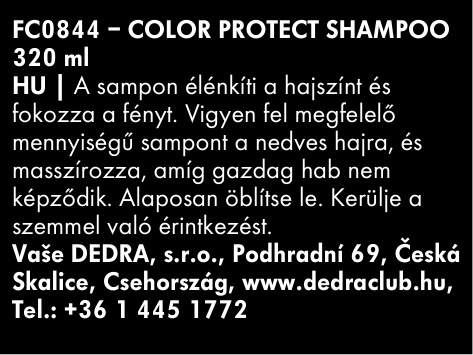 A COLOR PROTECT sampon kifejezetten a festett hajok igényeinek megfelelően lett kifejlesztve, amelyek finom, de hatékony ápolást igényelnek annak érdekében, hogy a szín sokáig élénk és ragyogó maradjon. Ez a sampon nemcsak a szín védelmét, hanem a haj intenzív táplálását és regenerálását is biztosítja, amely a kémiai folyamatoknak van kitéve.
