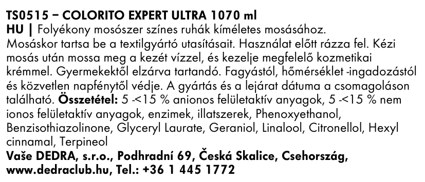 A COLORITO EXPERT ULTRA egy modern mosó gél, amelyet kifejezetten a színes ruhákhoz terveztek, amelyek finom, de hatékony gondoskodást igényelnek. Az új EKO összetételének köszönhetően, alacsonyabb adagolással hatékonyan távolítja el a szennyeződéseket, védi a színeket, és egyben biztonságos a érzékeny bőrnek és a környezetnek is.