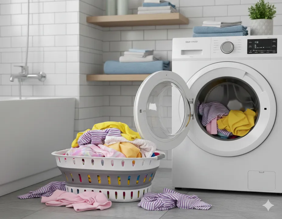 - A fürdőszobában ruhadarabok gyűjtésére mosás előtt vagy a mosógépből való szállításra