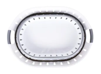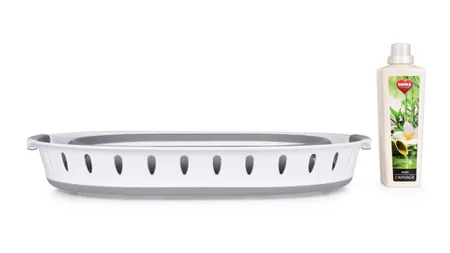 XXL összecsukható szennyeskosár COMPACTOR (61 cm) műanyagból és TPR-ből készült, amely elegendő helyet biztosít a nedves és száraz ruhák számára. A perforációnak köszönhetően szellőzik, és használat után 8,5 cm magasságra hajtható. Praktikus segédeszköz a fürdőszobába, mosókonyhába és az utazásokra – helyet takarít meg és megkönnyíti a kezelést.