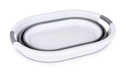 A COMPACTOR (23 L) összecsukható fürdőkádat/medencét használhatod kézi mosáshoz, a szennyes átszállítására, a mosogatásra, sőt a vásárlás szállítására is. Műanyagból és TPR-ből készült, fogantyúkkal a könnyű szállításhoz. Használat után mindössze 7 cm magasra csukható - helyet takarít meg otthon, a nyaralóban és az autóban.