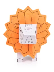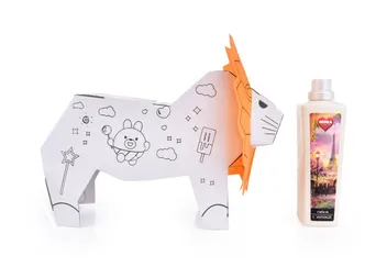 CREATE&PLAY – 3D összerakható színező OROSZLÁN 100%-ban újrahasznosított papírból készült erős kartonból. Állítsd össze, színezd ki és játssz vele! A csomag 6 filctollat és egy világító, zenélő gombot tartalmaz. Az összeszerelt dekoráció mérete: 34 × 22,5 × 14,5 cm. 3 éves kortól ajánlott.