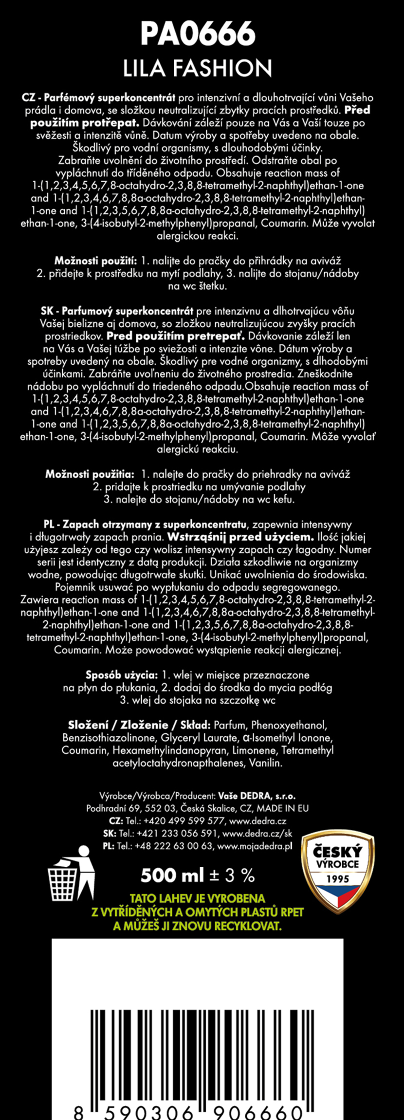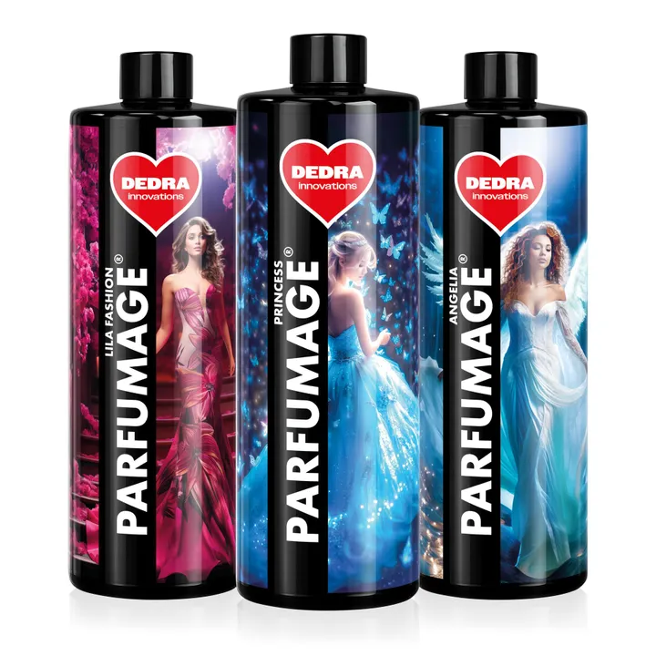 Családi csomag PARFUMAGE – parfümök mosáshoz és takarításhoz PRINCESS, LILA FASHION és ANGELIA. Három népszerű illat friss ruhákhoz és otthonhoz. Praktikus választás a mindennapi mosáshoz és takarításhoz, hosszú távú illatos hatással.