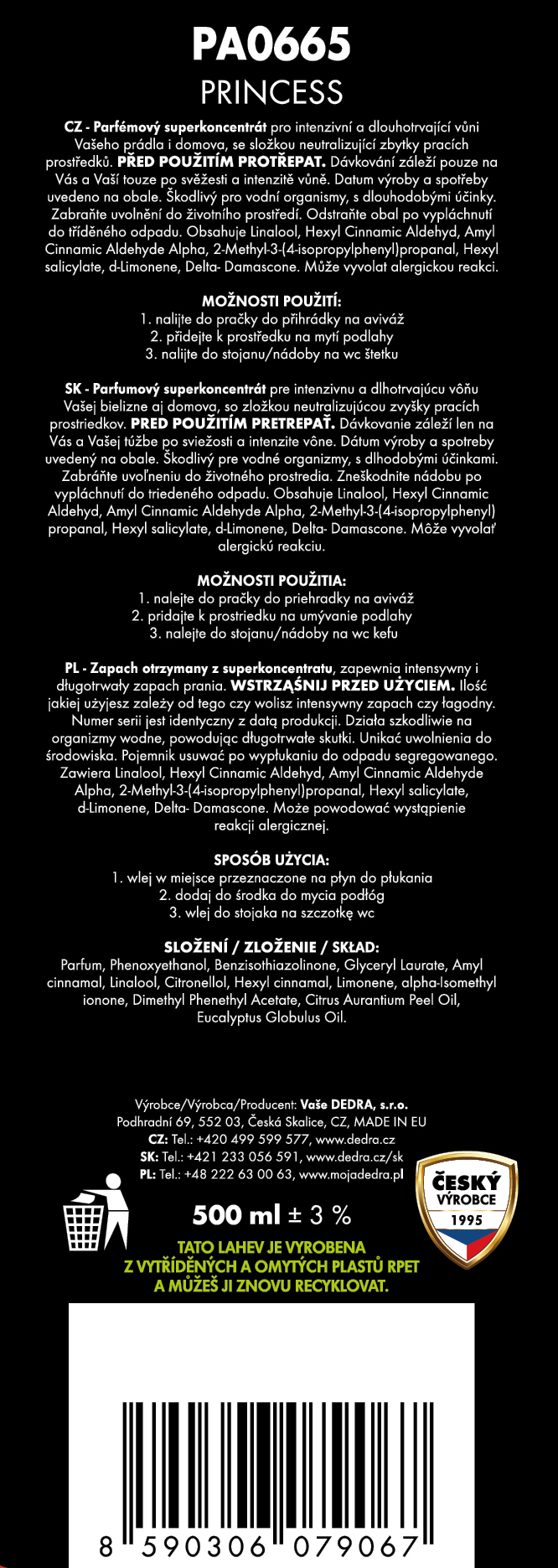 Családi csomag PARFUMAGE | Illat a mosáshoz és takarításhoz | PRINCESS & LILA FASHION & ANGELIA | 500 ml × 3