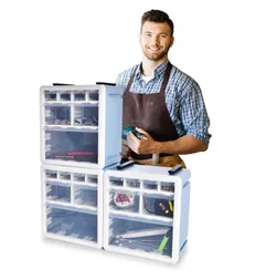 Soha többé káosz a műhelyben! A praktikus tárolóval mindig a helyén lesznek a csavarok, anyák, szögek és apró alkatrészek. A 7 fióknak és a moduláris rendszernek köszönhetően könnyen létrehozhatod a saját igényeidnek megfelelő összesítést.
