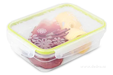 A hermetikus CVAK&CVAK 650 ml-es tárolóedény zárható fedéllel és szilikon tömítéssel nem szivárog, és hosszabb ideig frissen tartja a szendvicseket és az ebédet. Mikrohullámú sütőbe (fedél nélkül), mosogatógépbe és fagyasztóba is alkalmas – ideális munkahelyre, iskolába vagy utazásra.