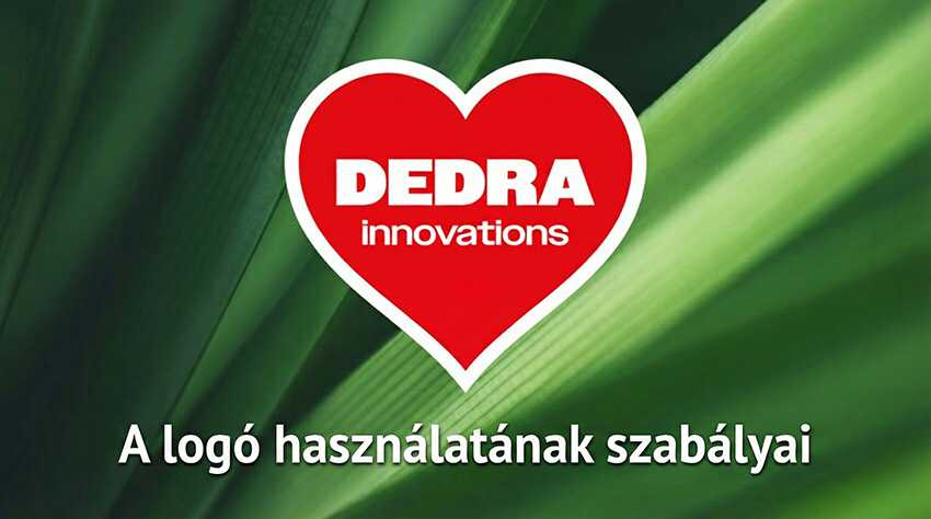 A fehér szegéllyel ellátott Dedra Innovations logó színes háttérre (beleértve a fényképeket is) való használatra készült. A piros szegéllyel ellátott logó fehér háttérre való használatra készült.