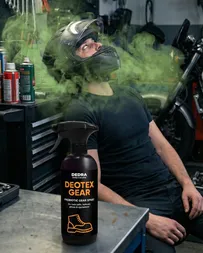 DEOTEX® GEAR 500 ml – probiotikus spray a sport- és motoros felszerelés szagának eltüntetésére. Semlegesíti a szagokat, hosszú távú frissességet és higiéniát biztosít vegyszerek nélkül. Ideális sisakokhoz, védőkhöz, dzsekikhez, hátizsákokhoz és egyéb felszerelésekhez. Gyorsan száradó összetétel, kíméletes az anyagokkal és a bőrrel.