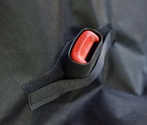 - Könnyű telepítés – 4 állítható heveder műanyag karabínerrel a fejtámlákhoz.