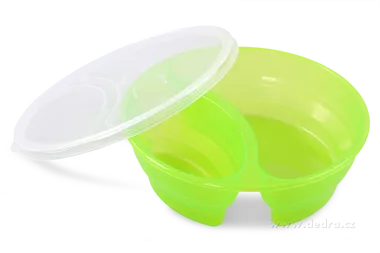 Praktikus DUOBOX 700 ml-es és 300 ml-es részre osztva friss és főtt ételek tárolására. Ellenálló műanyag, amely mikrosütőbe és mosogatógépbe is alkalmas. Ideális ebédlő doboz dobozos diétákhoz, munkához és utazásokhoz.