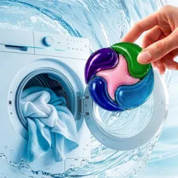 Koncentrált univerzális mosókapszulák ECOSPHERE kapszulák fehér és színes ruhákhoz. Hatékony 30-95 °C-on, enzimekkel, optikai fehérítők nélkül és töltőanyagok nélkül. Biológiailag lebomló összetétel, intenzív gyümölcsös illat és a modern mosás kényelme.