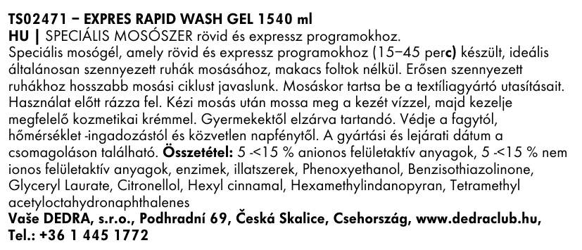 EXPRÈS rapid mosógél kifejezetten rövid és takarékos programokra lett kifejlesztve - gyorsan, hatékonyan és alacsony hőmérsékleten mos.
