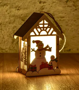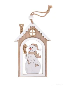 FÉNYLŐ HÓ EMBEREK | fa függőház LED világítással | 14 cm