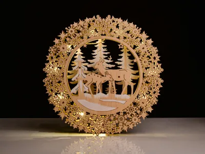 LED karácsonyi dekoráció | függő kör erdei tájjal | fa & hópehely | átmérő 32 cm