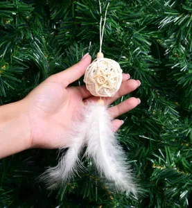 ANGELIA FONAL | rattan karácsonyi dísz tollakkal és gombbal | 20 cm