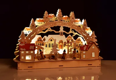 LED karácsonyi dekoráció | fa téli városka | részletes kivitelezés | szélesség 45 cm