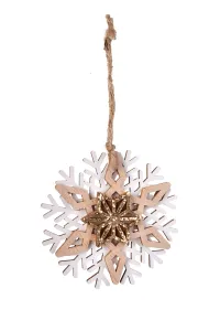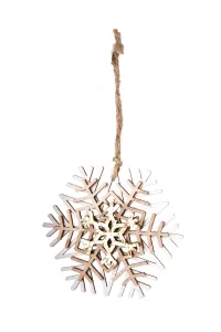 A tél csillogó ölelése | fa 3D hópehely csillaggal | 9 cm