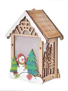 FÉNYLŐ TÉLI HÁZ | fa dekoráció hóemberrel és LED fényekkel | 14 cm