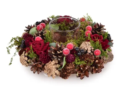 PIROS HARMÓNIA | természetes koszorú gyertyatartóval | Ø 22 cm