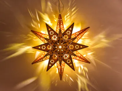 LED karácsonyi dekoráció | kétoldalas függő fa csillag | térbeli fényhatás | átmérő 30 cm