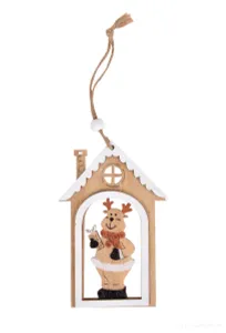 RÉNSZARVAS LÁTOGATÁS | fából készült függő dísz házikó formájában | 12 cm