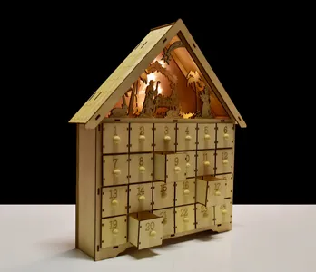 LED adventi naptár | fából készült jászol | 24 fiók az ajándékokhoz | magasság 42 cm