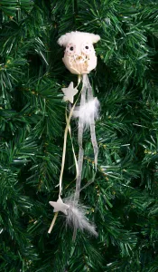 SÓLY ALVÁS | függő karácsonyi dekoráció | kézzel kötött baglyocska tollakkal | 30 cm