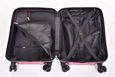 - a bőröndök belsejében cipzáras elválasztó membrán és pántok a ruhák rögzítésére.
