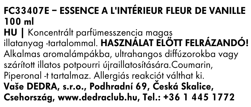 FLEUR DE VANILLE | parfümolaj aromalámpákhoz és diffúzorokhoz | PARFUMIA® ESSENCE À L'INTÉRIEUR | 100 ml
