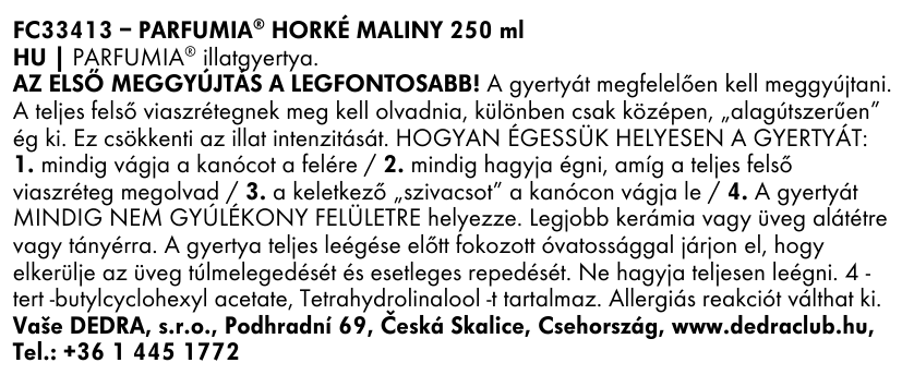 FORRÓ MÁLNA | szója illatgyertya | PARFUMIA® | 250 ml
