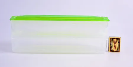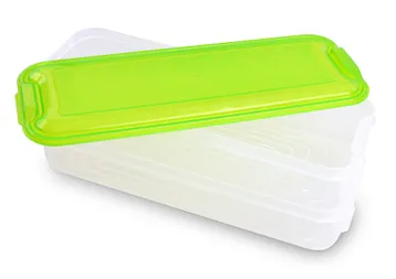 FRIGO 2 szintes doboz a hűtőbe (HŰTŐDOBOZ) 2 × 1300 ml kapacitással segít fenntartani a rendet, áttekinthetőséget és higiéniát a hűtőjében. Ideális sajtok, felvágottak, sonka, bagett, joghurt vagy ételmaradékok tárolására. Az egyes szintek egyszerűen leválaszthatóak és használhatóak külön vagy együtt. A keskeny forma és a tárolható kivitel helyet takarít meg, míg az átlátszó dizájn lehetővé teszi a tartalom első pillantásra való ellenőrzését.