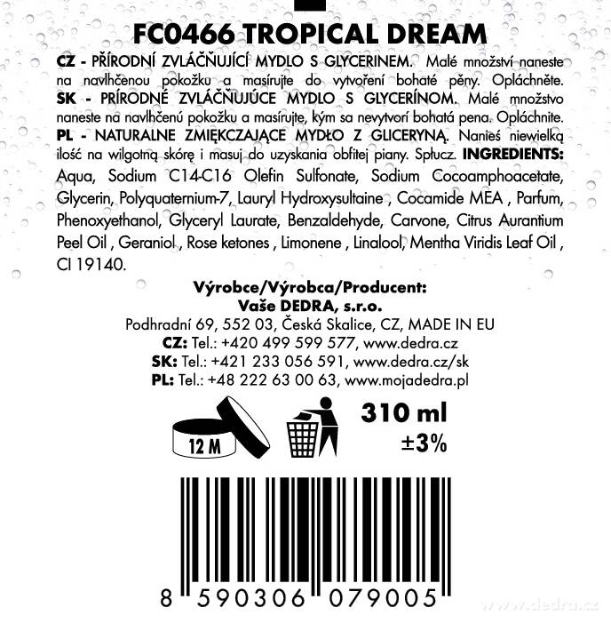 FRUITY 2+1 készlet – a RHUBARB TWIST & TROPICAL DREAM folyékony szappanok és a LIME SPLASH tusfürdő. Gyümölcsös ápolás, amely frissességet és könnyedséget hoz a mindennapi higiénába. Finoman tisztítja a bőrt és kellemes komfortérzetet hagy maga után.