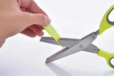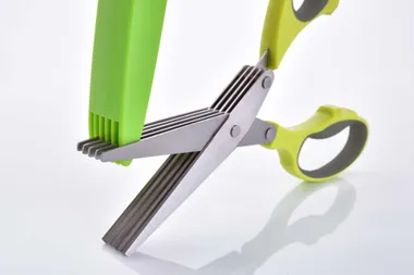 BYLINKÁTOR – 5 rozsdamentes acél pengével ellátott fűszerolló, amely gyors és egyenletes aprítást biztosít a snidling, petrezselyem vagy zöldhagymára. Tartalmaz egy tisztítót és védőkupakot a kényelmes és biztonságos használathoz.