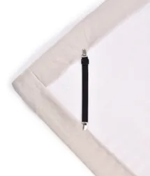4 darabos lepedőfeszítő készlet csatokkal és 31–110 cm-ig állítható hosszúsággal. A lepedő szoros tartása csúszás nélkül. Rugalmas és tartós feszítő gumik a matrac alatt. Tökéletesen rendezett ágyhoz és kényelmes alváshoz.
