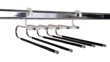 - Felszerelés: Speciális csúszásmentes rudak és a végén lévő megállítók megakadályozzák a nadrágok lecsúszását a vállfáról.