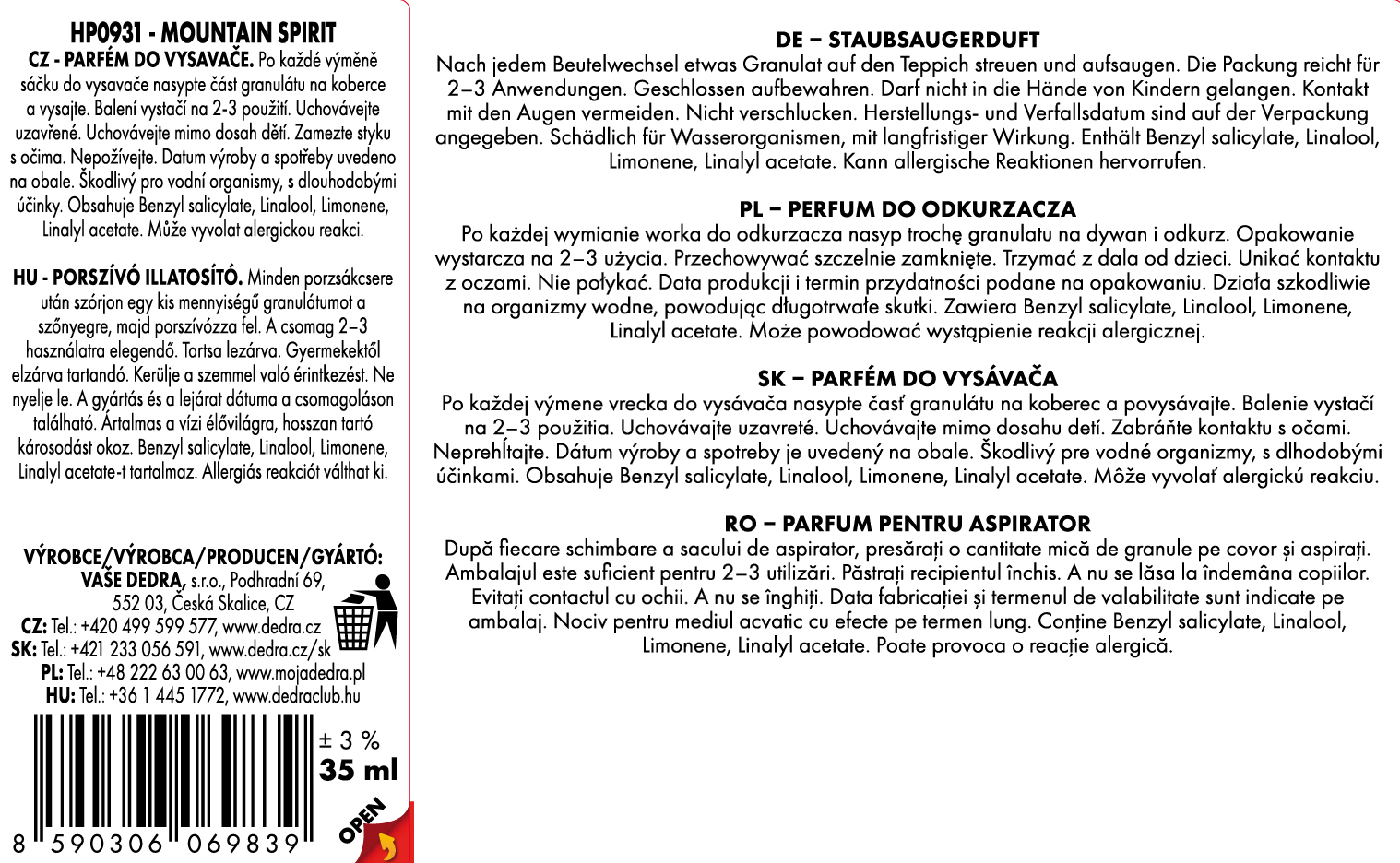 GOBELINO | Parfüm granulát porszívóhoz | MOUNTAIN SPIRIT