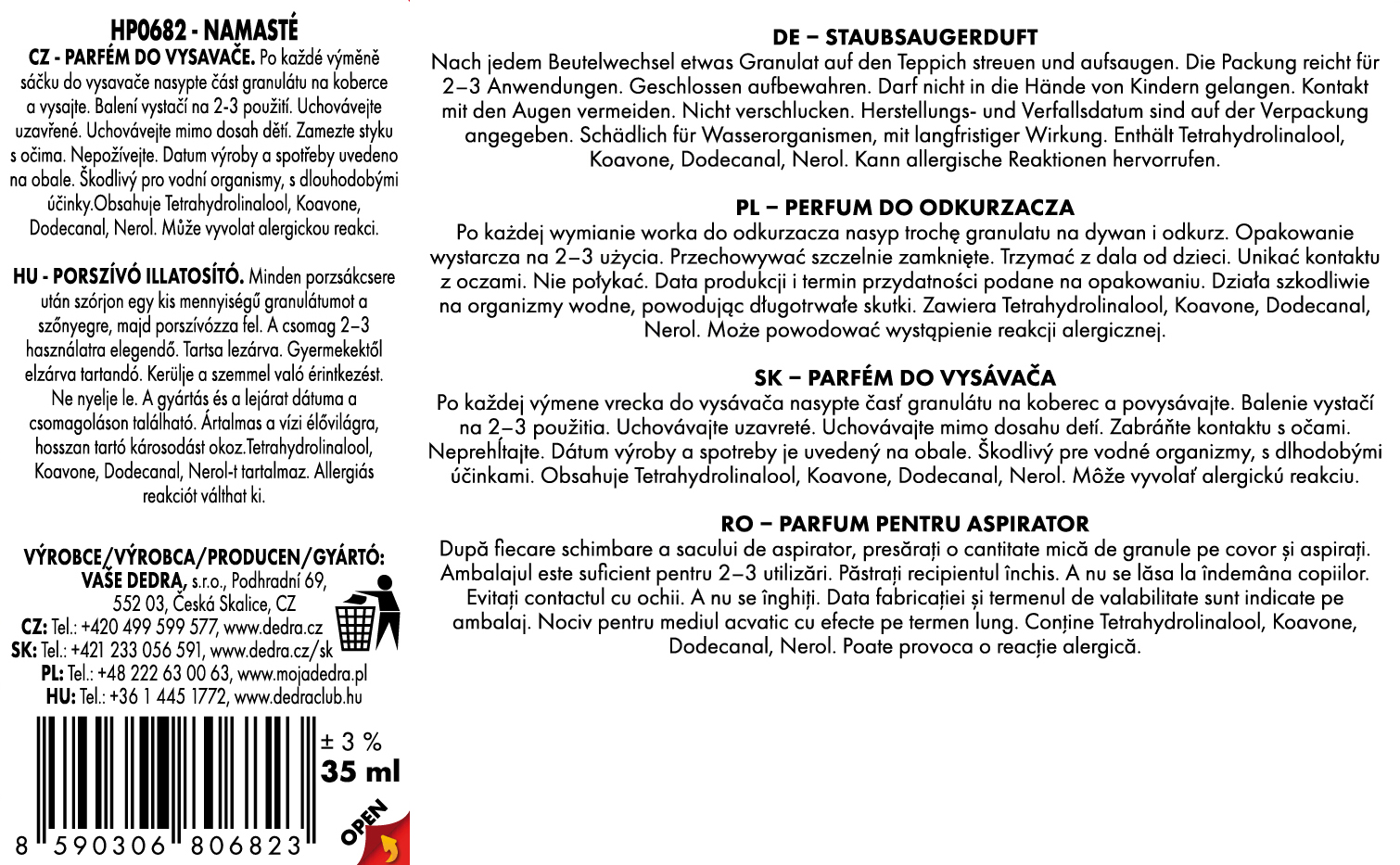 A GOBELINO parfüm granulátum megtisztítja a belső teret porszívózás közben, és semlegesíti a szagokat. A luxus kozmetikai illat a porszívó fűtésével szabadul fel. 3 zsákcsere elegendő belőle.