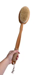 A GoEco® 2v1 kétoldalú masszázskefe ideális segédeszköz a napi higiénia és a relaxáció során. Az egyik oldalon finom természetes sörték találhatók, amelyek kíméletesen tisztítanak és eltávolítják a szennyeződéseket, míg a másik oldal fa masszázs hegyekkel kellemesen vérellátja a bőrt, ellazítja az izmokat és elősegíti a cellulitisz csökkentését. A hosszú bambusz nyél jute fonattal kényelmes fogást biztosít, és könnyen elérheti vele a nehezen hozzáférhető helyeket is, mint például a hátát.